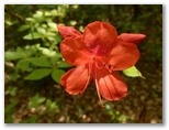 正味10分ほどで草戸峠に到着。北西に展望があり、高尾山を望めます。深い愛着のある高尾山ですが、その姿をイメージすることは、なかなかできません。遠くから望む山ではなく、中に飛び込んで味わう山、それが高尾山なのでしょう。ところで東高尾山稜は、ちょっと登って、ちょっと下って、またちょっと登って ... の繰り返し。そのたびに筋肉の使い方が変わるので、足に疲れが溜まりにくいと思います。ヤマツツジも点々と咲いていて、見る者を励ましてくれました。