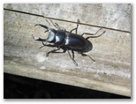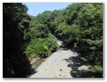 秦野市 ◆朝イチで大山山麓に行き、蛾の探索をした。これが予定より早く終わったので、葛葉緑地へ足を延ばす。きょうは丹沢・大山フリーパスBを買ってきたので、追加の費用は無い。◆秦野駅2番乗り場からバスに乗り、宮上(みやうえ)で下車。少し戻って、葛葉緑地の看板のある路地に入ると、突き当りが緑地の入口。◆葛葉川の流れる谷間に下りて行くと、涼しい風が吹いていた。案内図にあった「ハンノキ林」に行く。小規模な「林」に赤い花のキツネノカミソリが目を引いた。◆「くずはのつり橋」を渡って対岸に行くと公園があったが、特に見るべきものは無さそう。川原に下りると、浅く、緩やかな流れがあり、何組かの家族連れが遊んでいた。切り立った右岸に、幾重もの地層が露出し、各層に記号や番号が付いている。◆はじめの場所に戻り、「くずはの家」の付近でしばらく昆虫撮影。歩いてはひっくり返るコクワガタ。ハラビロカマキリに捕まって暴れるアブラゼミ。カラスにつつかれたらしいカブトムシ、など。◆宮前バス停の近くの曽屋神社に立ち寄る。目を引くのが、「夏詣」、「献氷」、「ゆきこおり」などの文字。初穂料500円でかき氷を献氷し、お下がりをいただけるということだったが、バスの時刻が来た。1時間に2本しかないのだ。 ◎ 秦野駅 10:50 == 10:59 宮上 11:00 --- 11:04 葛葉緑地 12:58 --- 13:08 曽屋神社 13:22 --- 13:24 宮前バス停 13:31 == 13:40 秦野駅 全2時間24分 ❀❀❀ ❢