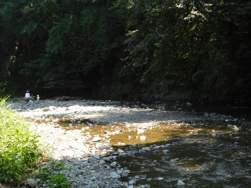 -- 葛葉川で遊ぶ親子。