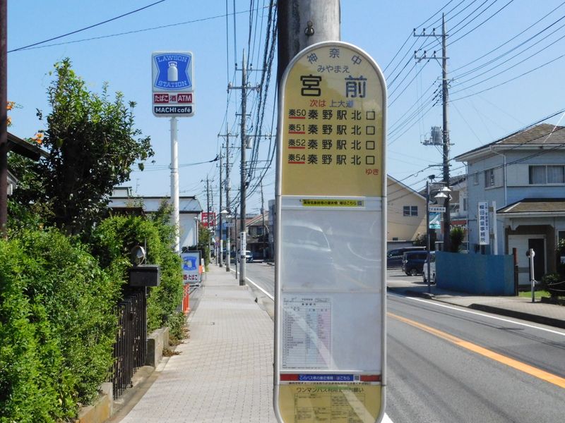 -- 宮前バス停:次のバスは2分後(のはず)。13:24
