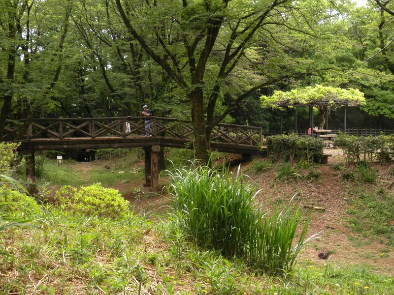 -- 片倉城跡公園。空堀を跨ぐ木橋。