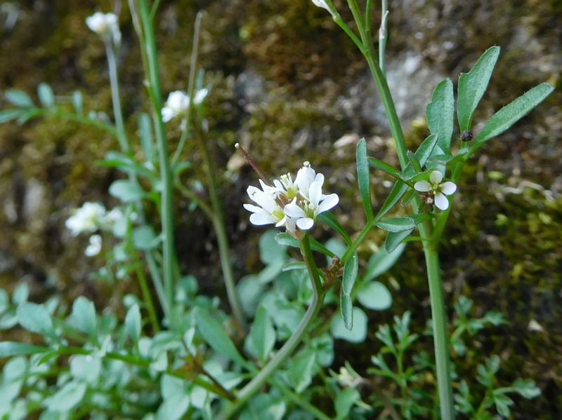-- ④ 擁壁に咲く、タネツケバナ。10:20