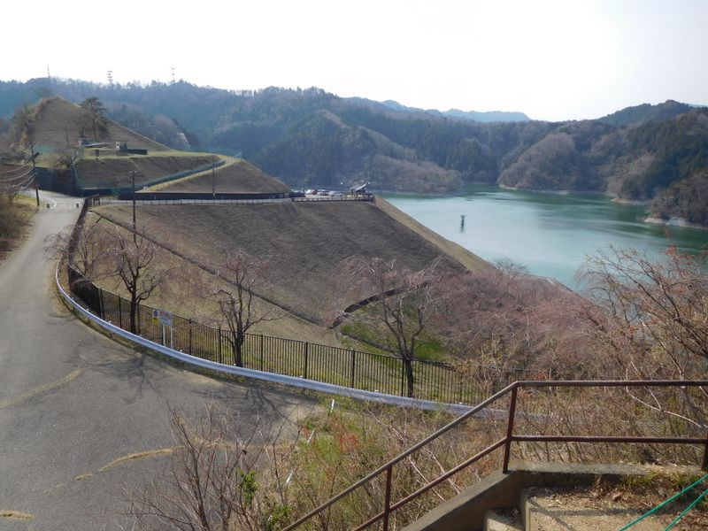 -- 城山湖の駐車場と展望台が見える。14:37