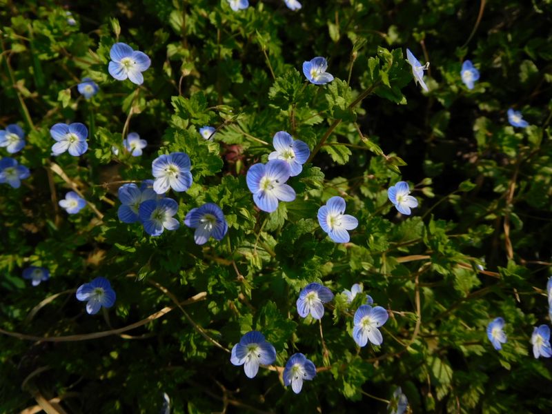-- きょう各地で見られた、オオイヌノフグリ。15:00