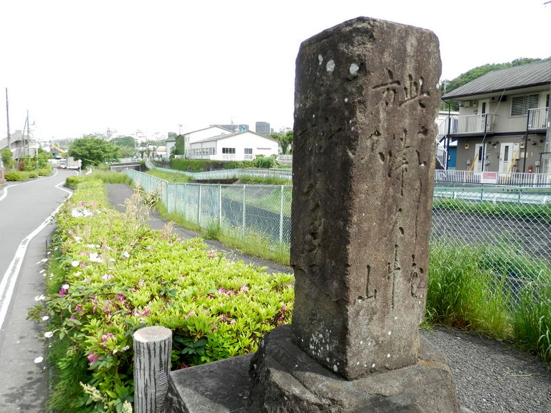 -- ⑫ 大栗川のほとりに八王子道道標。14:14