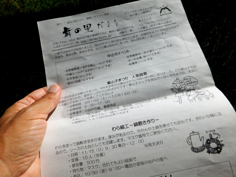 -- 水車小屋で、舞の里だより最新号をもらう。