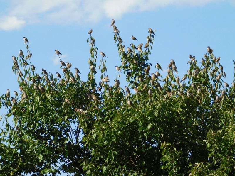 -- ざっと目算で、200羽ほどのスズメたち。