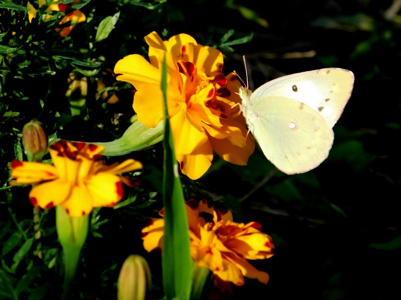-- モンキチョウ♀@マリーゴールド。