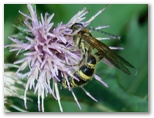 2021年10月20日(水) ◆絶好の秋晴れ。暑くもなく、寒くもない。明日からまた忙しくなりそうだから、少しでも英気を養っておこう。◆舞岡駅は横浜市内にありながら、「農村の駅」というイメージがある。しかし、きょうの「舞岡ふるさと村」は違っていた。耳をつんざく、ものすごい騒音が田園に鳴り響く。我慢しながら、アメニティを歩き抜くのみ。◆舞岡公園の近くまで来て、ようやく静かになる。とある畑の入口に、幼稚園のスクールバスが来ていた。サツマイモの芋ほり体験だろう。他にも子供たちのグループがいくつも来ていた。◆花も虫も、特筆すべき出遭いはなかった。そこで尾根道から「ふれあい広場」に初めて行ってみる。そこで立て続けに11種の虫を見つけたおかげで、帰りの足取りが軽くなった。◆「ふれあい広場」でキリガを撮影していたとき、地元の方が巨大なスズメバチの巣を教えてくれた。「尾根道」と「ふれあい広場」を結ぶ坂道の木の上にある。ご注意を。