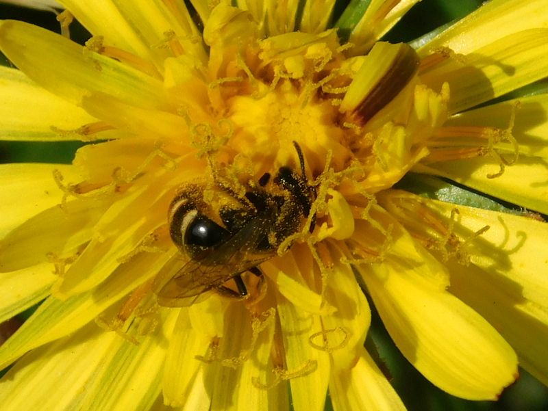 -- 花粉まみれの小さなハチ。