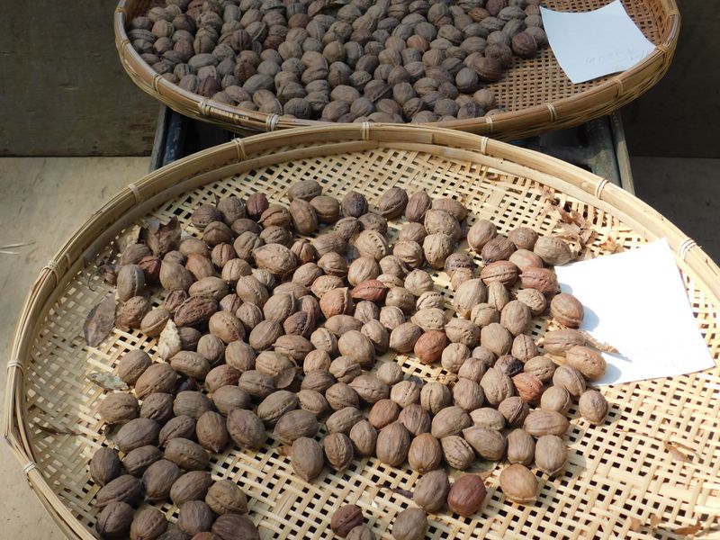 -- オニグルミの天日干し。