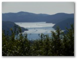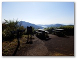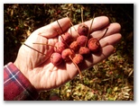 休憩を終え、先に進みます。1063m峰の登りには、ヤマボウシの赤い実がたくさん落ちていました。いつか食べてみたことがありますが、美味しくなかったので、二度と口にしていません。その小峰を下ると、湖尻水門への分岐でした。湖尻水門へは20分。桃源台バス停へはプラス15分。エスケープルートとしても使えるでしょう。この分岐から2分ほど行くと「箱根芦ノ湖展望公園」でした。車で来た人々も、ハイカーも、ここで一緒に芦ノ湖の展望を楽しめます。