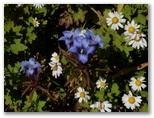 稜線を進んで行くと、愛鷹山が見えてきました。あの峰から、箱根はどう見えているのでしょうか? 足下には、アザミ、野菊、リンドウなどが、目いっぱい日差しを浴びています。丸岳から25分ほど下ると、「富士見台」なる木製の展望台がありました。「富士山と芦ノ湖が見えるのはここだけ」と書いてあります。ただ、両方を同時に見るには、180度以上のパノラマを写すカメラか、鏡が必要です。この展望台に上がり、美しく装ったそれぞれを、しっかり見てあげました。