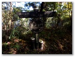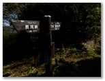 引き続き進んで行くと「長尾峠」と書かれた古い標柱が立っていました。そのすぐ先に分岐があり、「仙石原20分」と書かれています。この20分というのは、サイクリングコースに下り立つまでの所要時間で、桃源台または仙石高原バス停までは、さらに1時間ほど歩かねばなりません。間違えないよう、コースタイムの記入された地図を持って行きましょう。さて、長尾峠から箱根スカイラインと並行して歩くようになります。車の走行音や、人の笑う声が聞こえてきました。