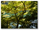これより仙石原方面へ、サイクリングコースを延々と歩きました。何か箱根の自然と出遭えるかもしれないと思ったからです。ところが歩いてみると、足に辛いアスファルト舗装である上、あまり展望のない道。半分ほど歩いたら疲れてしまいました。「湖尻自然探勝歩道」はパス。「この道は、一人歩くにゃ広すぎる。」無言でつぶやき、我慢の歩きを続けました。早川左岸に、うれしやベンチ2脚。一息つきます。さらさら、さらさら。せせらぎの音に、少し癒されました。