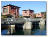深良水門から湖尻水門まで、湖岸の道を歩きます。残念ながら、芦ノ湖は樹木の隙間から覗くだけ。20分で湖尻水門に到着しました。こちらは4基の水門を備えた立派なものです。東海道本線に早川という駅がありますが、あの早川はここが源頭です。ところが、水利権の問題があって、この水門が開くのは、大雨で水位が上昇した時だけだとのこと。防災のためには大切だけど、何だか悲しいような湖尻水門。大変な苦労をして掘り抜かれた深良用水を、陰で守っています。