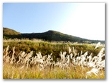 言うまでもありませんが、雑踏とは関わりなく、ススキの草原はきれいでした。ススキは少し黄金色になり始めたところ。むしろ残った緑色が美しく、ススキを引き立てているように思いました。気合を入れてカメラを構えます。順光でカシャ。逆光でカシャ。半逆光でカシャ。遊歩道の終点まで登ってUターン。金時山とススキ。乙女峠とススキ。丸岳とススキ。カシャ、カシャ、カシャ。これらの情景はすべて、自分自身のための記憶遺産です。