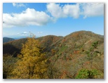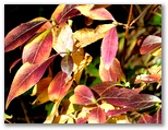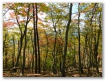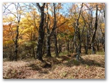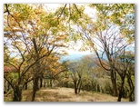 1週間前に大持山を歩いたときのように、「晩秋の頃」のメロディーが脳内を流れ始めます。♪ 茜や金色 落ち葉の道 ♪ いや、落ち葉になるのは、もう少し先でしょう。今ここでは、萌える葉(各種モミジ)、燃える葉(コハウチワカエデなど)が楽し気に大空を飾っています。空の青と雲の白がスクリーン、地面の褐色が舞台。その奥行きは深く、しかも輝いています。絵のように美しく、歌のように心をとらえる、きょうの山。やがてあでやかな赤一色になるのでしょうか?