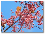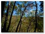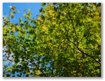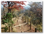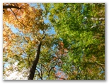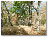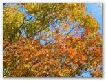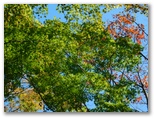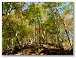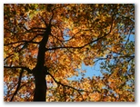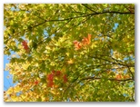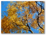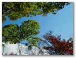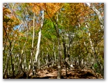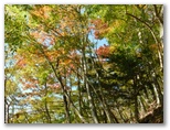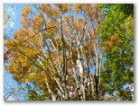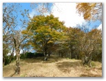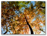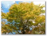 その後20分余り経つと、まぶしい太陽が現れ、あらゆるものに再び輝きを与え始めました。空を見上げると、先ほどの大きな雲は消えてしまったようです。これより後、雲が太陽を隠すことは二度とありませんでした。そしてついに、待望の明るいカヤトに入ります。まず、前方に立つ美しい木が目に入ってきました。黄金色に茂った見事な枝っぷり。紅い葉も品良くちりばめられています。幹の傍らで見上げると、伸び上がる幹と枝々が天を賛美しているように思えました。