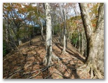 マルガヤ尾根を登りきり、鍋割山稜のメインルートに接続しました。きょうは左折し、鍋割山に向かいます。この稜線の紅葉はすでに終わり、枯葉と落ち葉になっていました。でも私の楽しみは、丹沢主稜の眺望。最高峰の蛭ヶ岳を中心に並び立つ主稜を、最も美しく望める展望地へと足が勝手に早まります。この道で、今朝マルガヤ尾根の取り付きで声をかけてくださった熟年男性と再開しました。相変わらず嬉しそうな声で「鍋割山の北尾根も面白いですよ」とのことです。