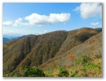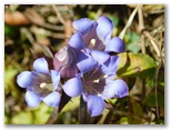 あちらこちらでリンドウが咲いています。つぼみもたくさんあります。そして、何と言ってもカヤト最大の魅力は、光あふれる解放感と広大なパノラマ。東面には、マルガヤ尾根と並ぶ小丸尾根、長大な三ノ塔尾根をはじめ、幾重もの尾根が、南方に裾を引きます。西面には鍋割山南稜が豊かな山ひだを見せ、栗ノ木洞、櫟山へと続きます。遥か相模湾の沖には伊豆大島、その右に真鶴半島と伊豆半島。遠く天城山、明神ヶ岳、金時山、愛鷹山、そしてまだ姿を見せない富士山。