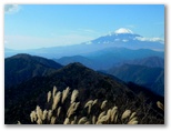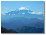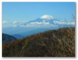 踏み跡が極めて明瞭になりました。もはや、踏み跡と言うより、一般登山道なみです。鍋割山稜からこのカヤトだけを訪れる人々がいるのかもしれません。そうする価値を与え、増幅する主役は、やはり富士山。今望めば、甲相国境、西丹沢、鍋割山稜を前衛に従え、高く、厳かに、美しく聳え立つ、わが国随一の霊峰。人の魂を高揚する力も日本一の山。加えて、南アルプスの一部も見えてきました。北岳と間ノ岳、そして塩見岳。見れば胸の血が熱くなる峰々です。