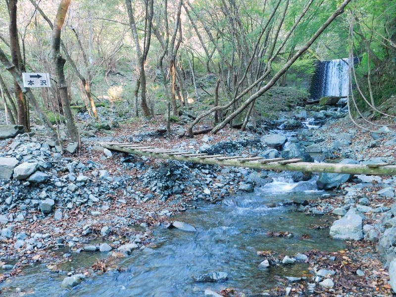 -- 木橋で本沢を越える。8:37