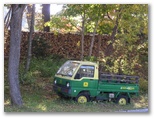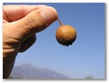 「飯盛山ハイキングMAP」の案内板から展望が大きく開きます。登山道わきにマメナシのような野生の梨の木が直径1〜2cmの実を落としています。ここは長野県ですが、山梨県にはたくさんあるのかも知れません。
