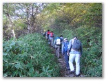 ゆるやかな登山道に入ると、いくつものパーティーと抜きつ抜かれつです。みんな会話がはずんでいます。高原の秋の爽やかな空気が肺に心地好く感じます。少し開けた場所で休憩したら、あちこちにヤスデが蠢(うごめ)いていました。
