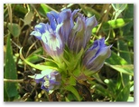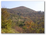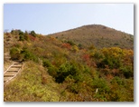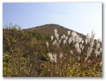公園のようによく整備された登山路を軽快に登って行くと、右手前方に飯盛山頂が見えてきました。本当に山盛りご飯のような形をしています。リンドウ、マツムシソウ、ススキなど、秋のお膳立ても完璧です。