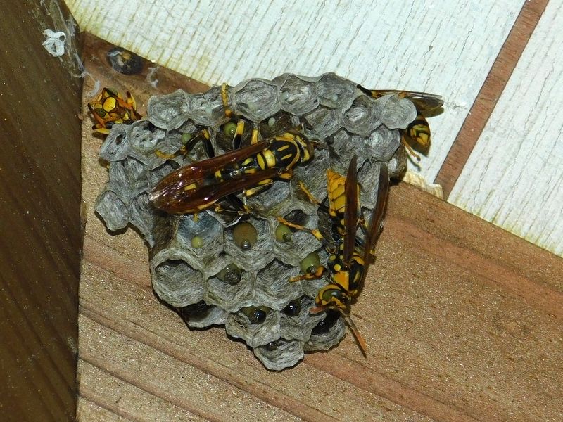-- キアシナガバチの巣に幼虫が。