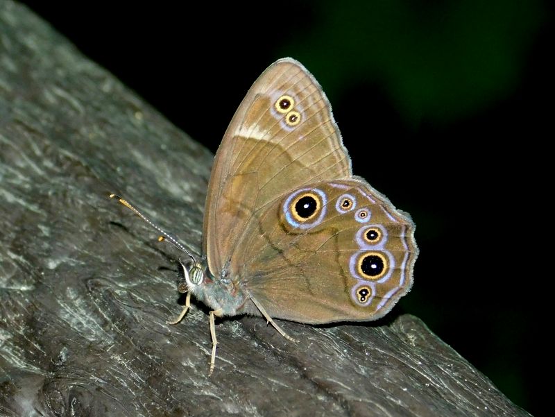 -- クロヒカゲの円紋がフラッシュ光を反射。