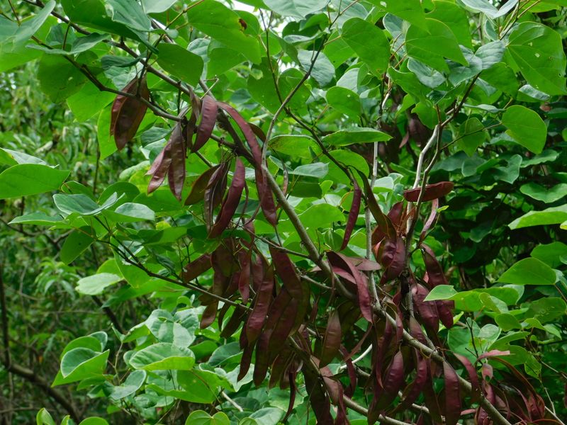 -- ハナズオウに豆のような実。