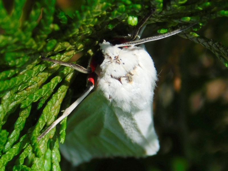 -- シロヒトリの赤い肢が見える。