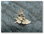 2020年11月8日(日) ◆晩秋の午後は短い。屋外で物がよく見えるのは、4時半頃までだろう。それまでの貴重な2時間を使って、三保市民の森へショート探索を試みる。◆林縁に到着早々、ケンモンミドリキリガを見つけた。横浜市内では初見。羽化直後なのか、至近距離で接写しても、全く動かない。◆この森には長い擬木柵があり、小さな虫を探すには都合が好い。コマユバチ、クサカゲロウ幼虫など、擬木の上でわずかに動いていたのを見逃すことはなかった。◆日中はあまり飛ばないクロコノマチョウが、午後も遅くなると、別の蝶のように敏捷に飛ぶ。すでに葉の落ちた柿の木の、枝と枝の間をくぐり抜け、1個だけ残っていた熟柿にとまった。◆花や虫との出遭いは少なかったが、草木の色々な実が見られた。鳥たちはこれらの実を食べないのだろうか? ◆帰り道は薄暗くなったが、夕暮れ空のあかね雲と、サルスベリの紅葉との取り合わせがきれいだった。