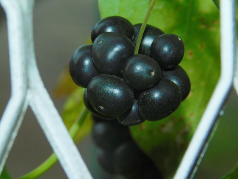 -- フェンスに、シオデの実。