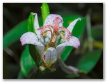 2020年11月18日(水) ◆昨日の三保市民の森では、心ならずも早期終了となり、森に心を残してきた。きょうの天候は、昨日とほぼ同じ。よし、続きだ! とばかり谷道に向かった。◆擬木柵の柱頭に、様々な虫が見つかる。昨日も見た種々の虫がきょうも来ていたが、意外にもカメムシ類をいろいろ見られるのが面白い。◆きょうもまだフユシャクを見つけることはできなかった。暖かすぎるのだろうか? きょう、最も遅い夏日の観測記録を更新した町が、全国にあった。◆一輪咲きのホトトギスの小群落があった。花弁の斑点は、色の薄い上品な印象。花弁の先端部は、ほんのりピンク色を帯びる。虫探しの後で、よいお口直しになった。