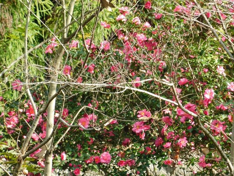 -- 植栽のツバキが多い。
