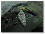 2021年1月8日(金) ◆前回(一昨日)のフユシャク探索では、交尾態を見つけられなかった。フユシャク探しは、発生の時を逃すと次のチャンスは1年後。何としても今シーズン中に見つけたい。◆現場に行くと、さっそくウスモンフユシャク♂を見つけた。その時は気付かなかったが、♂の翅の下に♀がいたのである。(♀の肢が外にはみ出ていたのだが、老眼で見えなかった。)帰り道にもう一度見ると、♀の体が♂の翅の外に出ていた。ようやく交尾態の撮影ができた!◆種の同定にあたり、Web上の資料写真と見比べて絵合わせをするのは、なかなか難しい。例えば、ウスモンフユシャク♂とウスバフユシャク♂。翅の帯や線の折れ曲がり具合い、紋様の濃さと色合いなどは、撮影アングルと光線次第でかなり印象が変わる。◆実物を見て判別できる力を持てれば理想的だが、その境地は蛾の大海の彼方にある。荒海に沈没しないよう、探し、撮って愉しむ、趣味の領域に踏みとどまるのが安全だ。