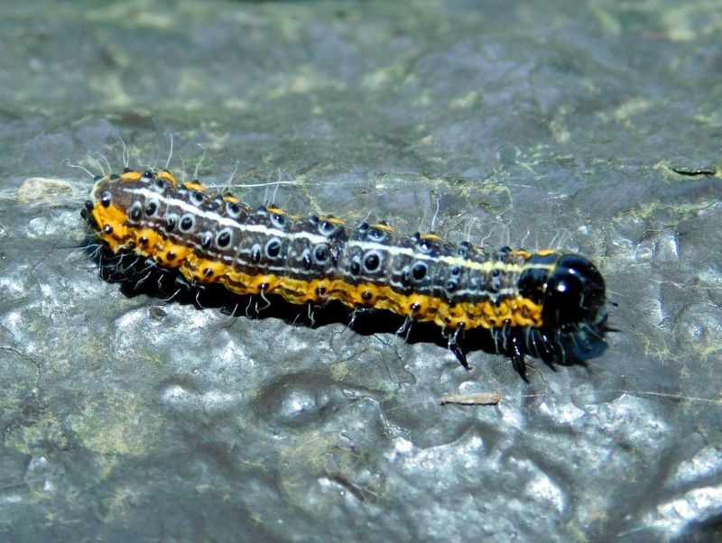-- シロヘリキリガの幼虫:右が頭。