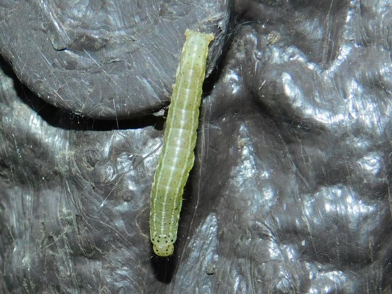 -- ブナキリガの幼虫:下が頭。