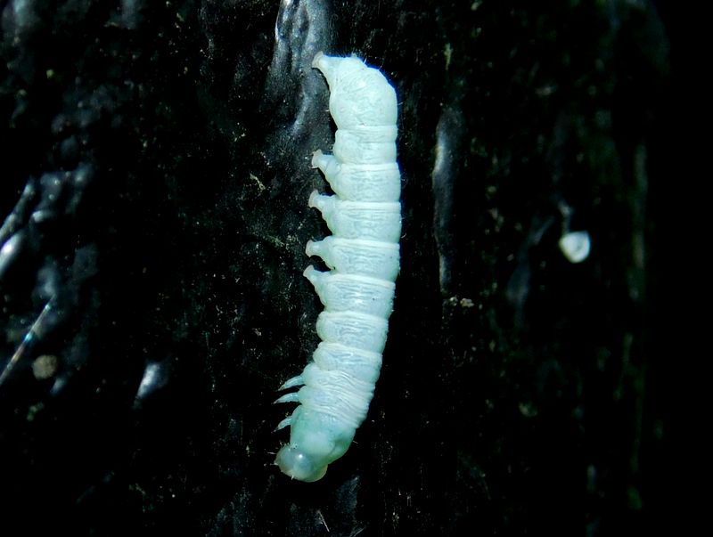 -- チャイロキリガの幼虫:下が頭。