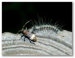 2021年5月2日(日) ◆晴天が続くゴールデンウイーク、5連休の2日目。感染予防のため、人出の少ない三保市民の森へ。◆初めにモンキアゲハの吸水シーンに遭遇。ナガサキアゲハとカラスアゲハもやって来たが、いずれも滞在時間が短過ぎて、撮影できなかった。◆注目の擬木柵には、先回と同様、多種の芋虫・毛虫がいた。最も多いのは、言うまでもなく、膨大な発生数を見せるキアシドクガの幼虫。今回は、ヤマトシリアゲの成虫も目立った。◆オオイシアブとよく似た、チャイロオオイシアブがいることを知った。後者は前者よりも少ないようだ。