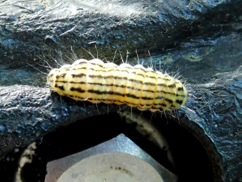 -- ミノウスバの幼虫:左が頭。