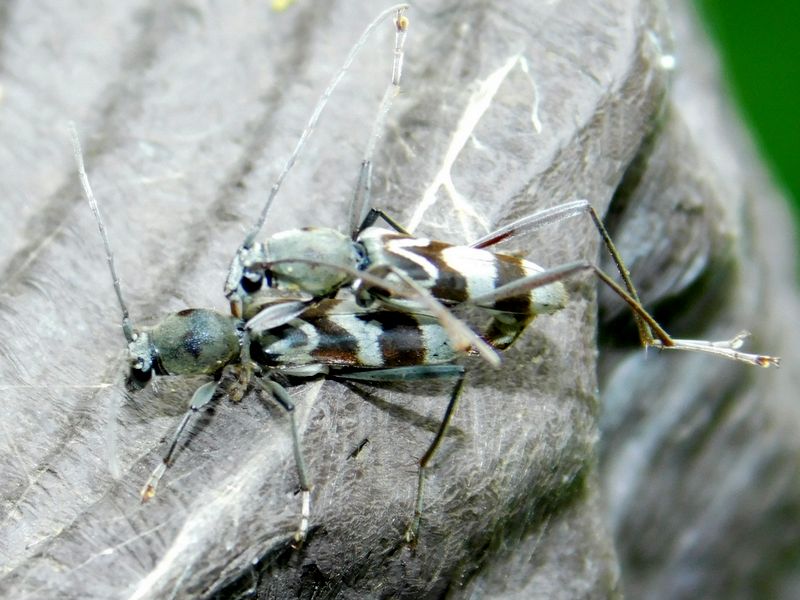 -- トゲヒゲトラカミキリ:あちらこちらで交尾中。