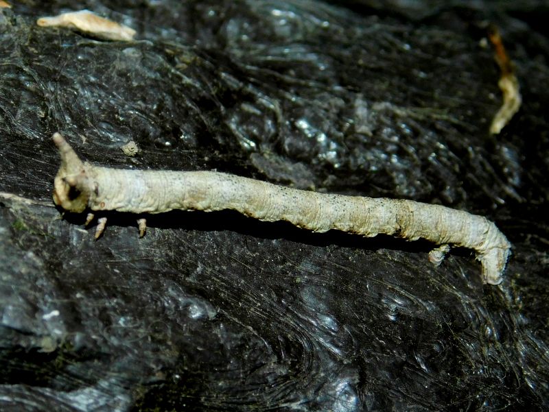-- トビモンオオエダシャクの幼虫。