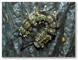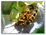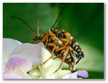 2021年6月9日(水) ◆今年は気のせいか、あじさいが例年よりも美しい。三保市民の森の谷道のあじさいもきれいに咲き、花に虫たちが来ているはず。一方、栗の花は既にあらかた終わったが、付近の擬木柵にカミキリムシがいるかも知れない。これらは時を逃さぬうちに見ておきたい。◆まず、早朝の散歩を兼ねて、照明下の植木を点検する。一見、虫など何もいないように見えるが、ていねいに探すと、7種8頭の蛾が見つかった。今回もまた、灯火の威力を実感。◆日が高くなってから、再び谷道へ。あじさいの植え込みでは、交尾中のヨツスジハナカミキリが見られた。また栗林の林縁で少し探すと、みな普通種ではあるが、3種のカミキリムシと、他の虫が容易に見つかった。◆三保平の桜の洞(うろ)に、巨大な〇〇がいるのを見つけた。閲覧注意。◆ヒダリマキマイマイとミスジマイマイのニアミスを目撃。何も起こらなかった。