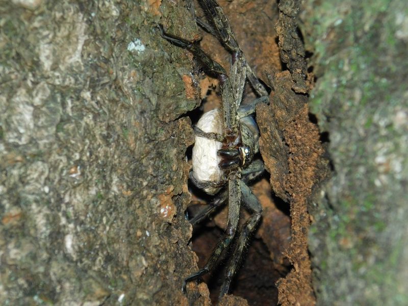 -- 卵嚢を抱える巨大グモ@桜の木の洞。