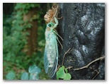 2021年7月23日(金) ◆いよいよオリンピック開会式の日が来た。スポーツの日が移動して、きょうは祝日だ。でも開会式の始まるのは午後8時。森を探索する時間は十分にある。◆日の出前に家を出た。まず灯火ポイントをチェック。コヨツメアオシャク2頭、アケビコノハ1頭をはじめ、5種6頭の虫が見つかった。◆谷道に入ると、目を奪うのは何と言ってもヤマユリ。強い香りには少々辟易する。小虫が顔にまとわりつき、目に飛び込むヤツもいて厄介だ。◆羽化進行中のヒグラシがいた。緑白色の体と暗緑色の複眼が美しい。腹部の長さから、オスだと判る。◆霧が丘口から三保市民の森を出る。ここはクマゼミの声が賑やかだ。撮影したいと思うのだが、姿が見えない。