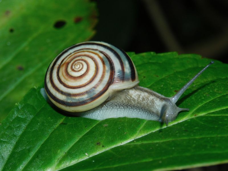 -- ミスジマイマイ:朝露で活発。